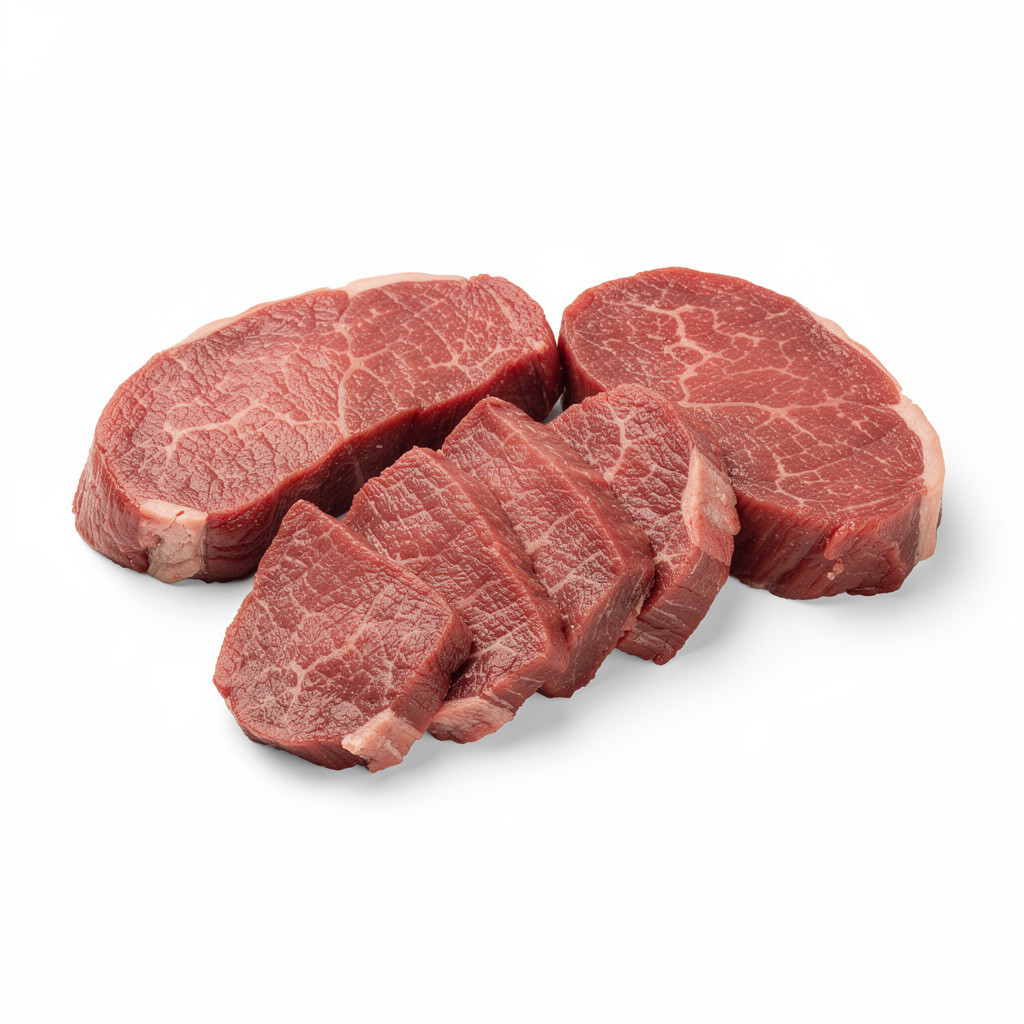 • Категории А и Б, калибр, мраморность, жирность, куски: лопатка, рибай, окорок, вырезка.